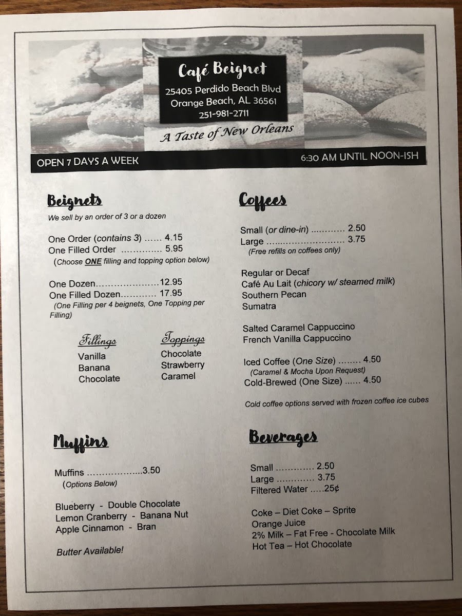 Complement your beignets with their selection of gourmet muffins or a steaming cup of freshly brewed coffee, including specialties like Cafe Au Lait and Southern Pecan. Patrons rave about the friendly service and cozy atmosphere, making it a perfect spot for coffee lovers and dessert enthusiasts alike. As Tommy LaConte puts it, "I’ll certainly be returning for more." Experience the magic of beignets at Cafe Beignet of Alabama OB today!